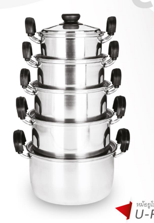 - 5 aluminum pots with matching lids