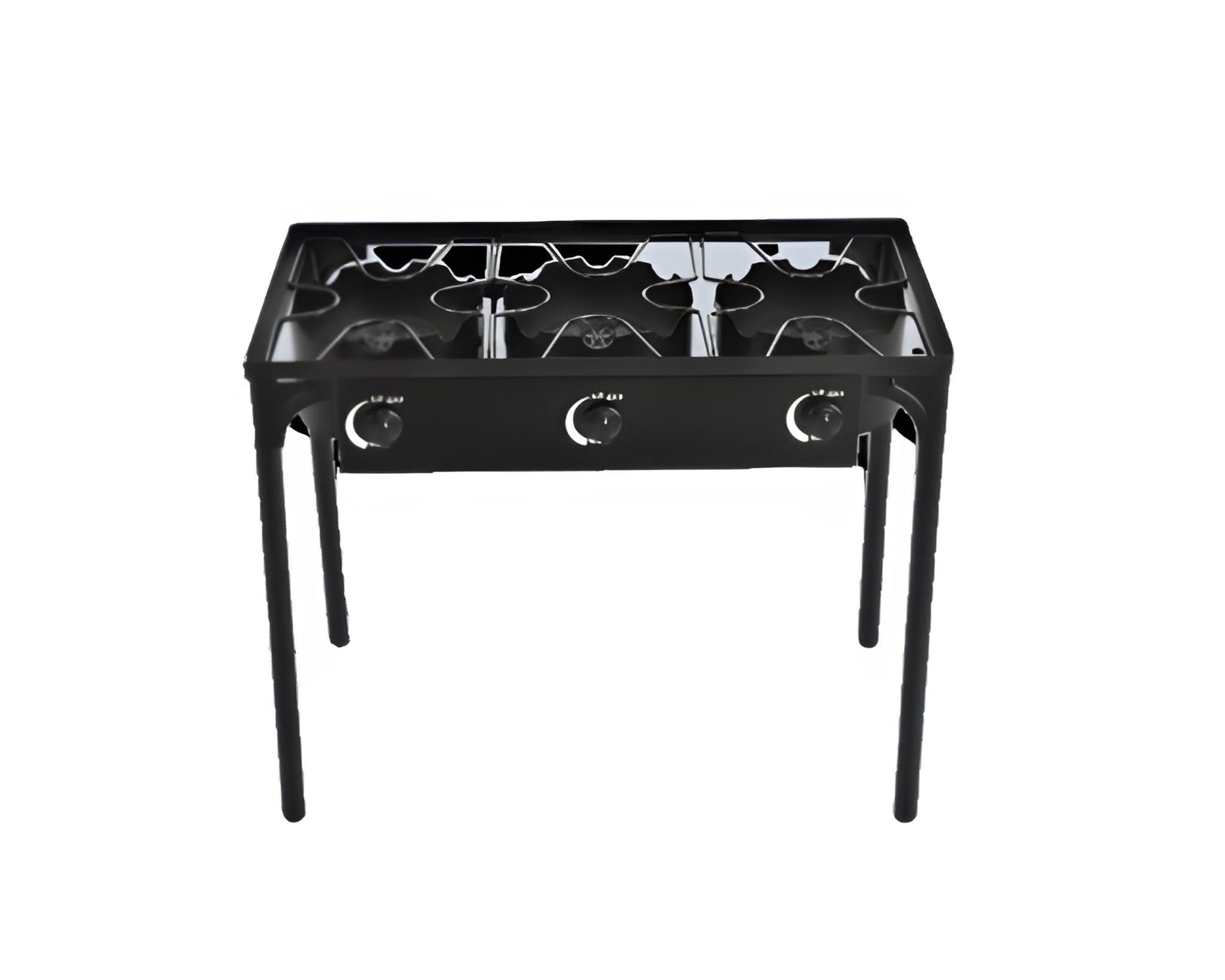 Cook for a crowd with this triple burner cast iron stove, engineered for high-powered outdoor cooking. Featuring 3 independently controlled burners delivering a total of up to 162,000 BTU, a durable frame, and a 20 PSI steel braided hose, it's perfect for outdoor events, crawfish boils, and camping. Outdoor use only.