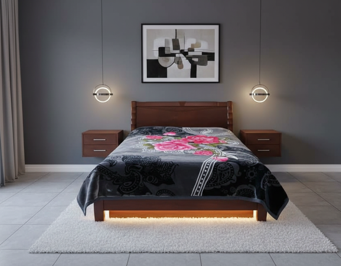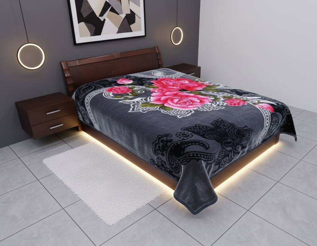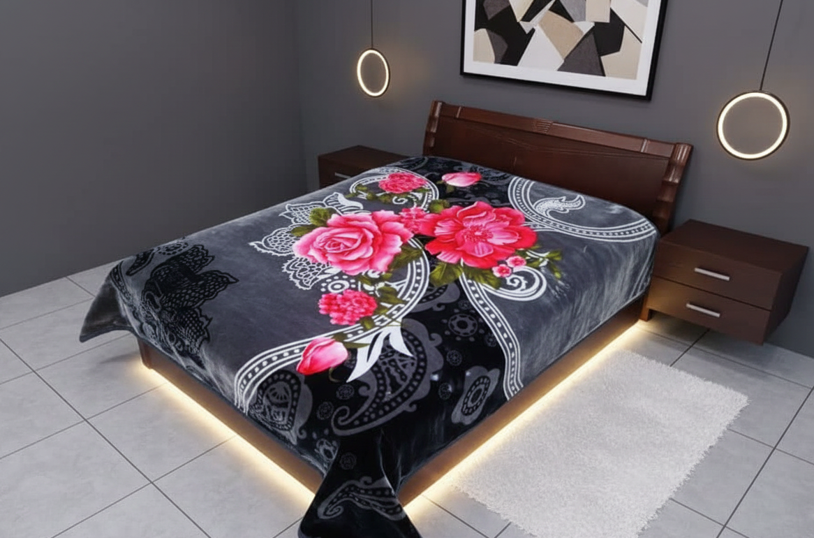 A premium-quality blanket with a luxuriously soft texture and artistic patterns on both sides. Perfect for cozy winter nights, it offers warmth and style, making it an elegant addition to any bedroom. The design adds a subtle decorative charm.