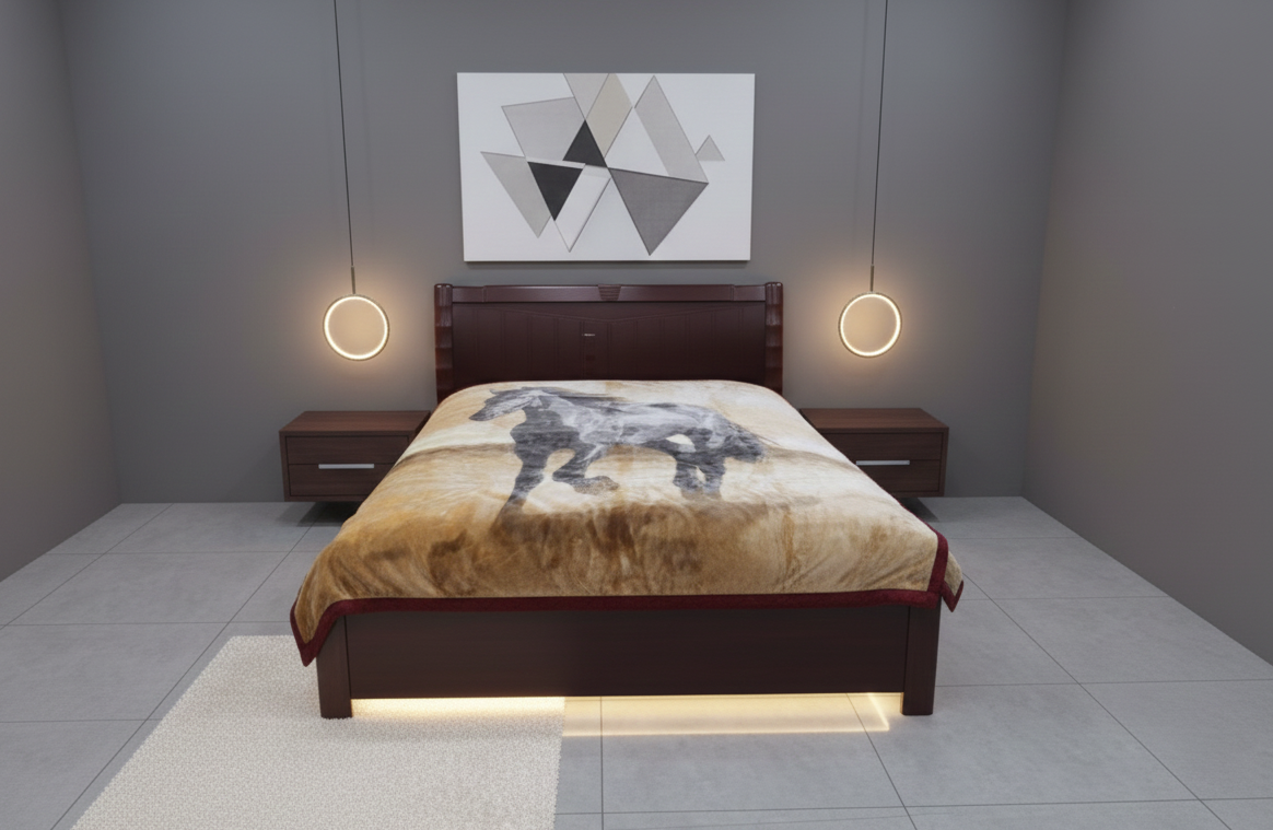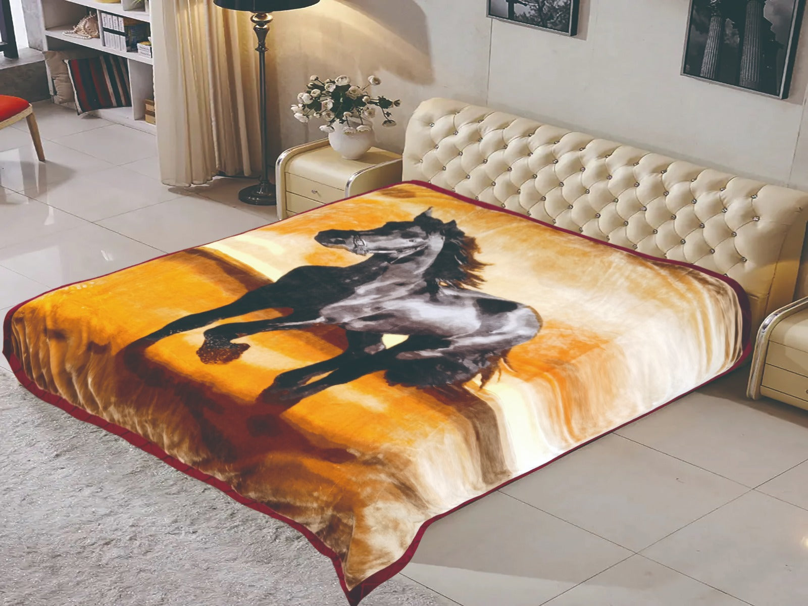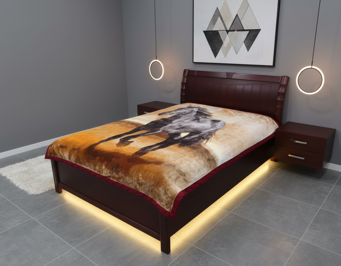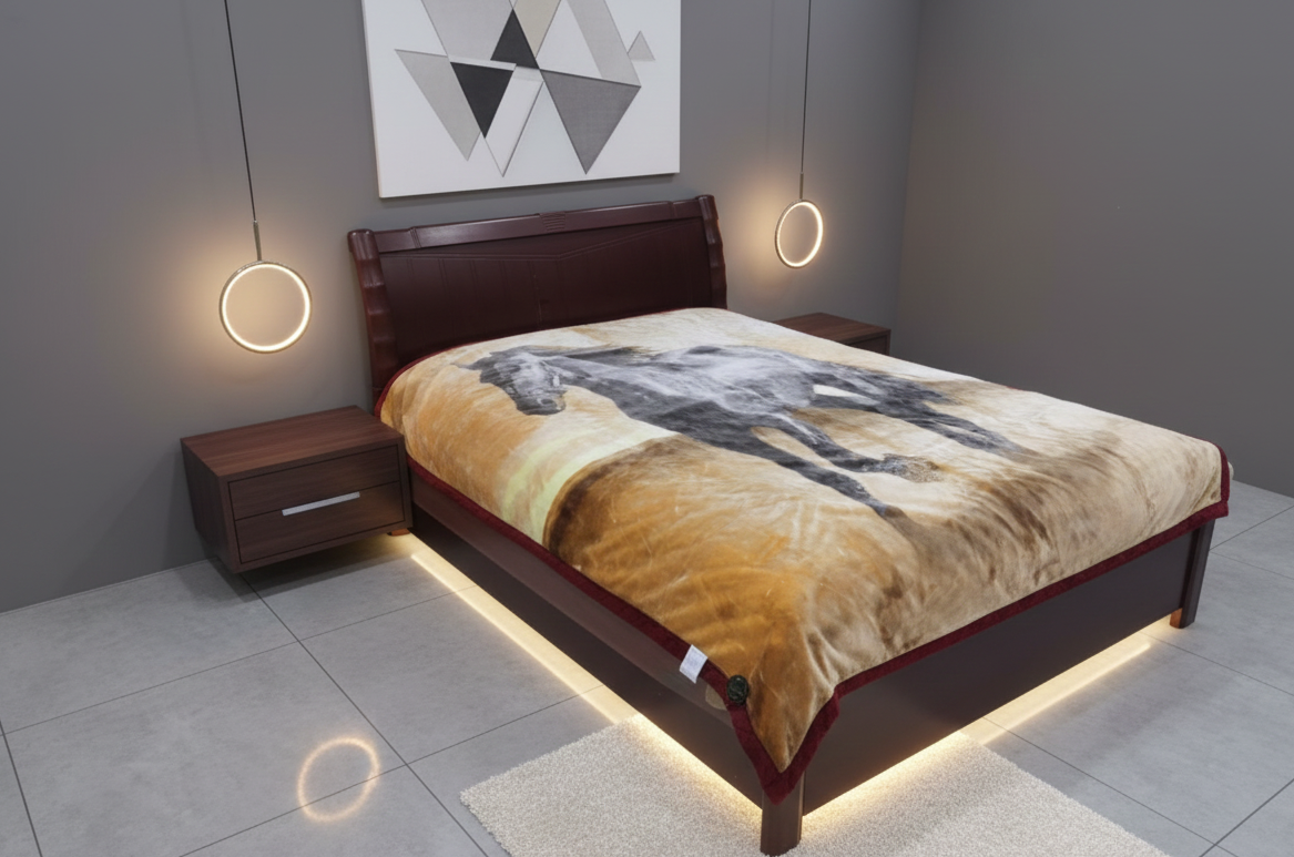A premium-quality blanket with a luxuriously soft texture and artistic patterns on both sides. Perfect for cozy winter nights, it offers warmth and style, making it an elegant addition to any bedroom. The design adds a subtle decorative charm.