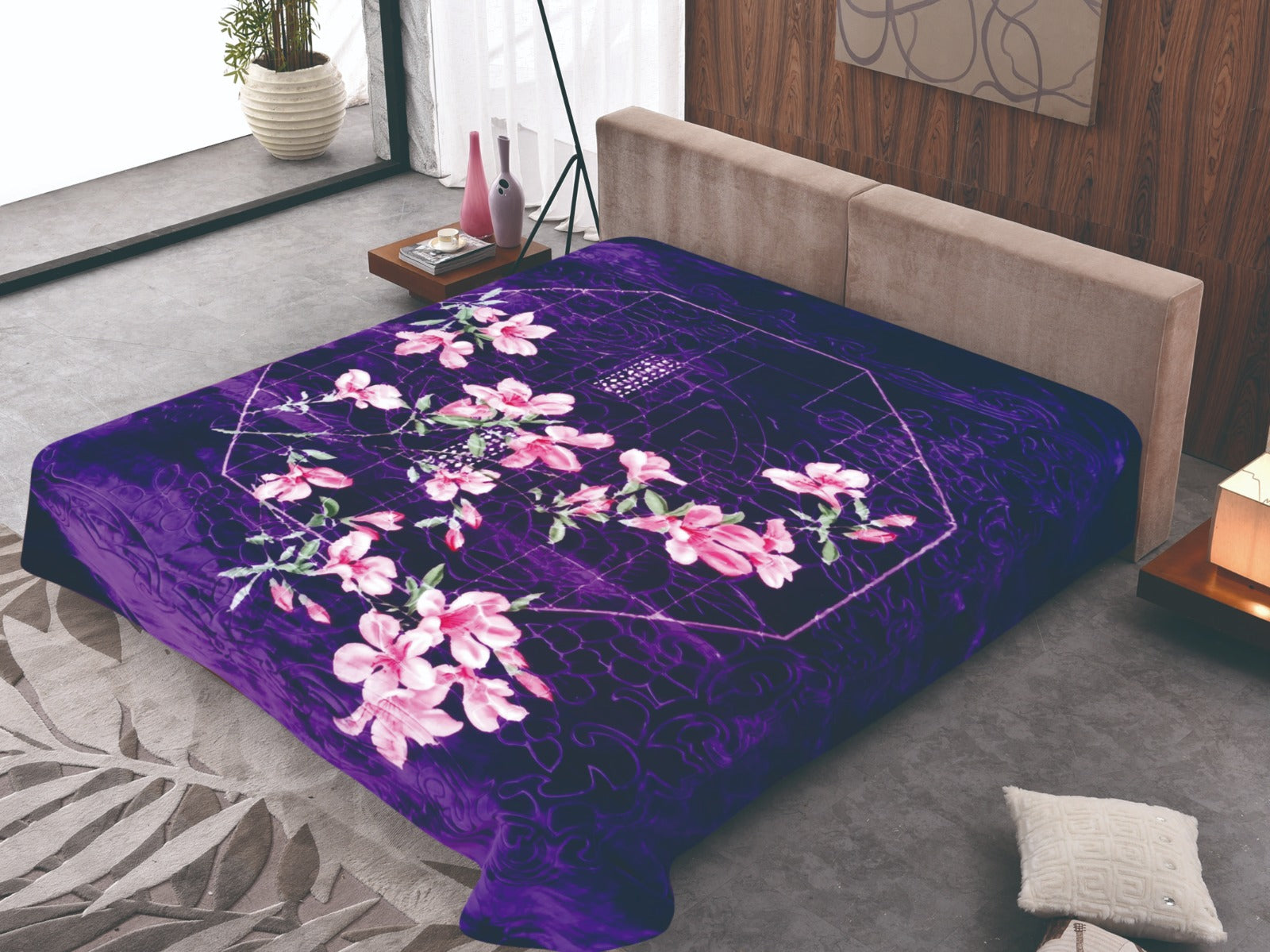 A premium-quality blanket with a luxuriously soft texture and artistic patterns on both sides. Perfect for cozy winter nights, it offers warmth and style, making it an elegant addition to any bedroom. The design adds a subtle decorative charm.