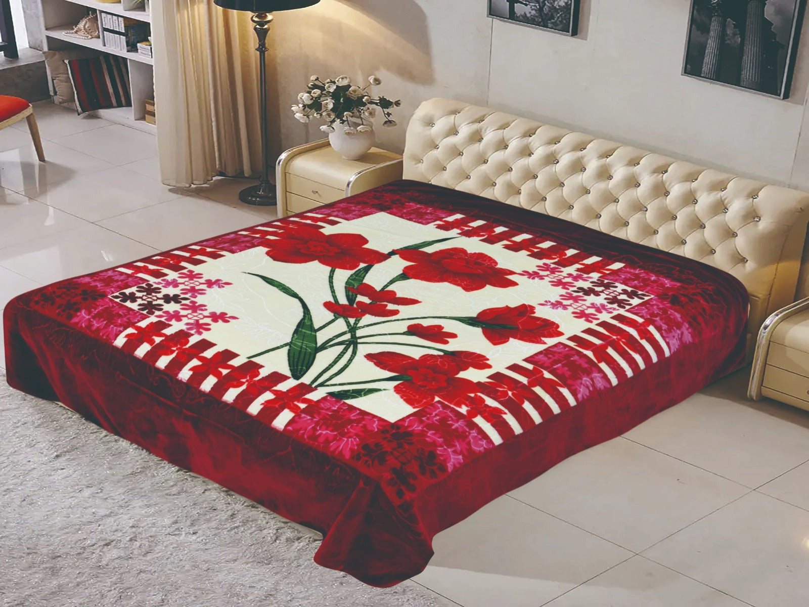 A premium-quality blanket with a luxuriously soft texture and artistic patterns on both sides. Perfect for cozy winter nights, it offers warmth and style, making it an elegant addition to any bedroom. The design adds a subtle decorative charm.
