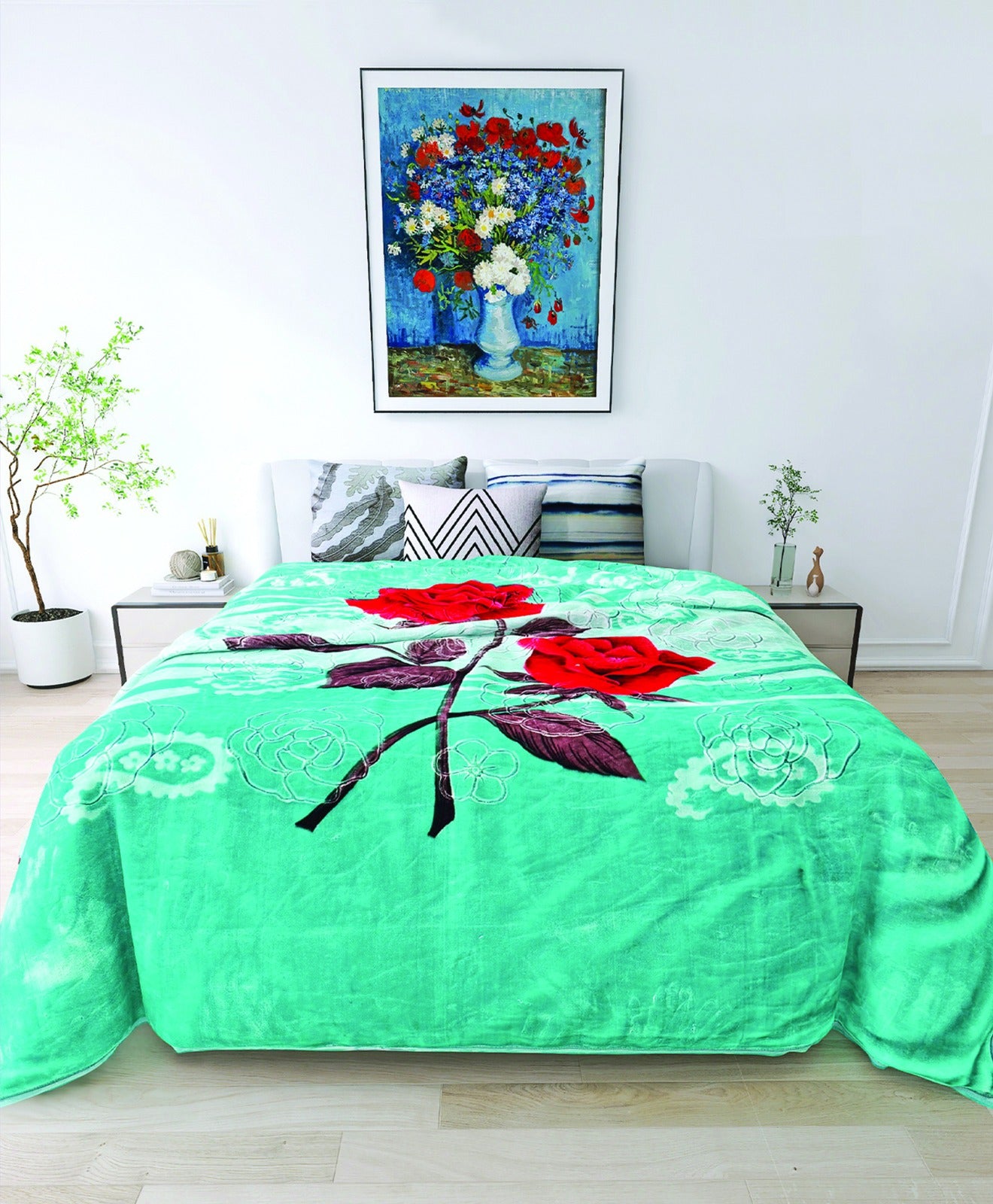 A premium-quality blanket with a luxuriously soft texture and artistic patterns on both sides. Perfect for cozy winter nights, it offers warmth and style, making it an elegant addition to any bedroom. The design adds a subtle decorative charm.