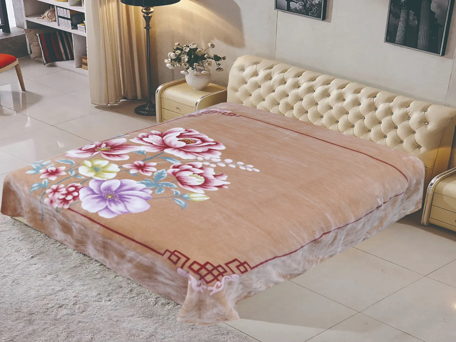 A premium-quality blanket with a luxuriously soft texture and artistic patterns on both sides. Perfect for cozy winter nights, it offers warmth and style, making it an elegant addition to any bedroom. The design adds a subtle decorative charm.